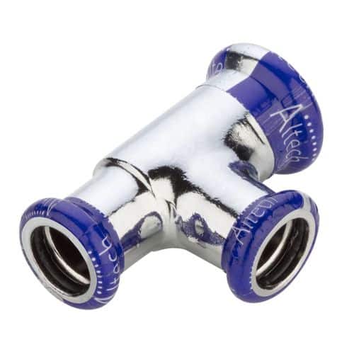 Pressrördelar / Presskopplingar M-Profil för tappvatten, värme samt oljefri tryckluft. Med O-ring i EPDM. För dimensionerna 42 till 54 mm rekommenderas pressning med slinga. För dimensioner 76,1 till 108 ska slinga alltid användas. Accepterad monteringsanvisning 2021:1 enligt Säker Vatteninstallation. Max temperatur 110 °C. Läckageindikering opressad: Ja. Pressindikering: Ja.