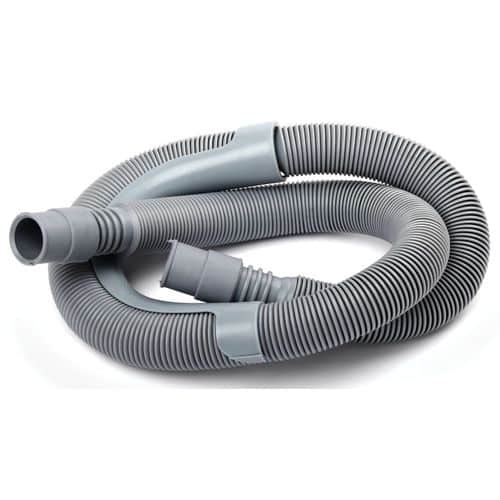 Grå utloppsslang för disk- och tvättmaskin.