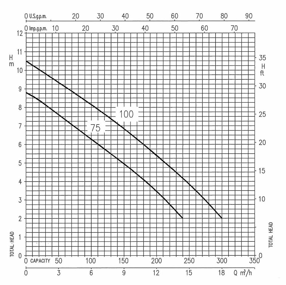 Pumphus, motorhölje, pumphjul (typ virvelhjul) och pumpfot av rostfritt stål AISI 304 (SIS 2333). Motoraxel av rostfritt stål AISI 303. Oljesmord dubbel axeltätning. Karbon/keramik/NBR på motorsidan. SIC/SIC/NBR på pumpsidan. 10m kabel. Max vätsketemperatur; 50°C. Max partikelstorlek; 35mm. Motor: skyddsform IP58. Isolationsklass: F. 1-fas utförande har inbyggt motorskydd med automatisk återställning. 3-fas utförande måste separat motorskydd installeras. Minsta pumpgropsdiameter 600X600X600 vid användandet av pump med nivåvippa. Anslutning 40.