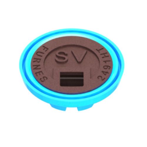 PREMIUM lock för ventilbetäckning med slitsad låspackning, ljusblå, med rund SV märkning.