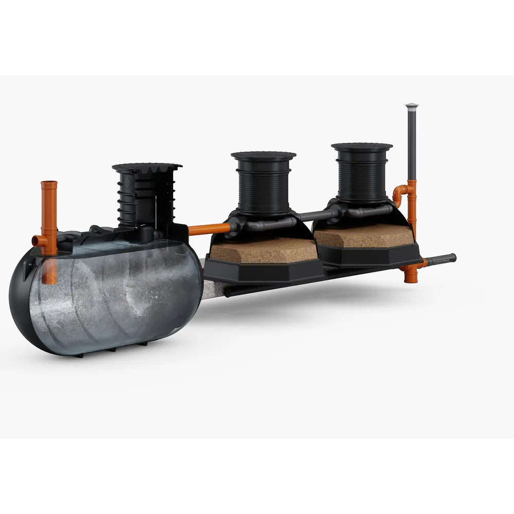 Våra gråvattensystem består av en slamavskiljare och ett kompakt kokosbädd (KKB) som biofilter.