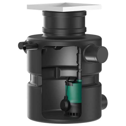 Anslutningsklar pumpstation för installation under markplan eller golv.